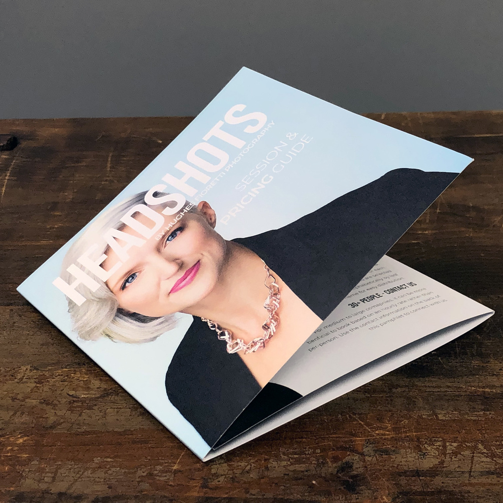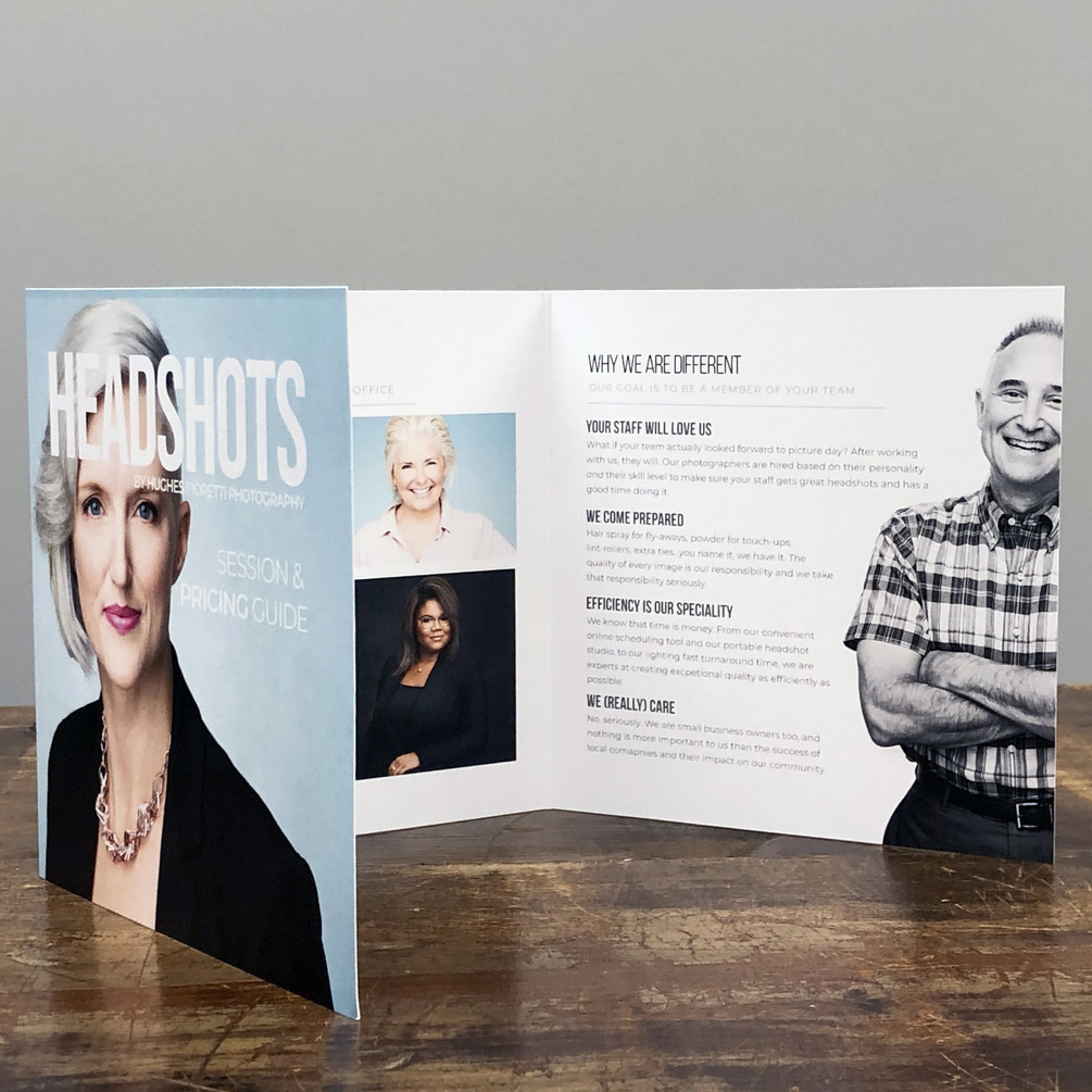 Looking for an easy way to present your headshot services to companies? This 5x5 trifold design is perfect for those networking events where you need to put something tangible in the hands of a potential client that will showcase the best of what you do and give them all of the information they need.