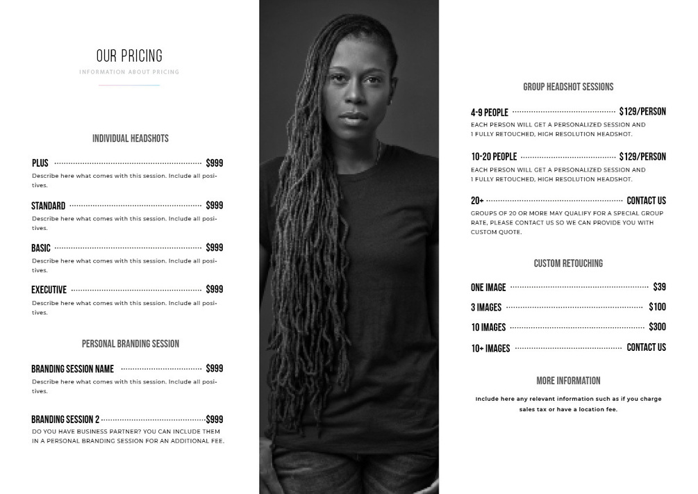 Headshot and Pricing Guide Template